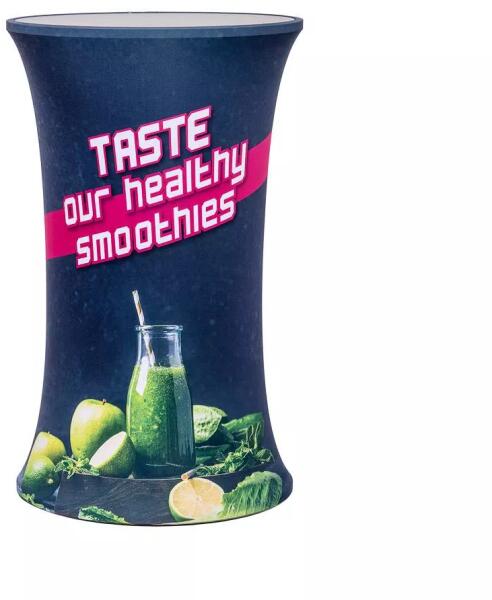 Vékony kialakítású ovális pult. A sztreccs szövet ráncmentes promóciót, a hordtáska pedig könnyű szállítást tesz lehetővé.
